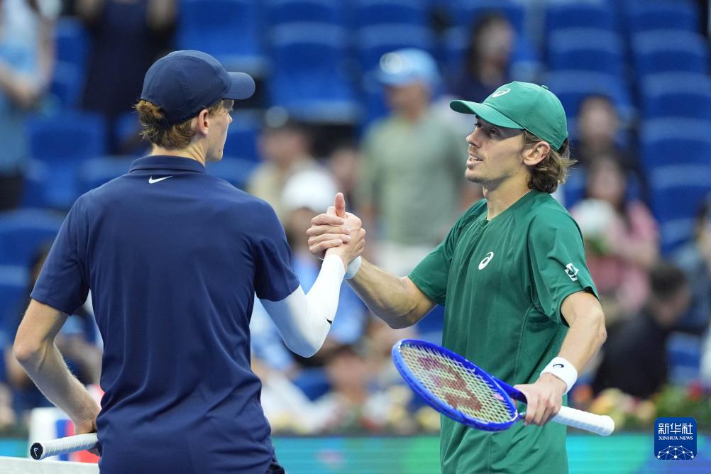9月30日,辛纳(左)和德米纳尔在比赛后相互致意。